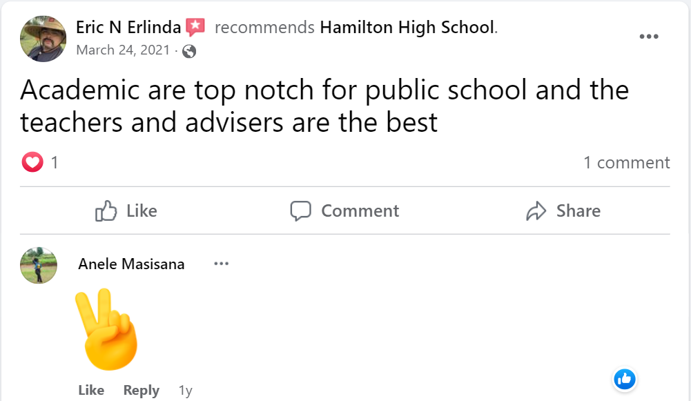 Hamilton High School – Trường Trung học Mỹ được công nhận về sự xuất sắc trong trong giáo dục bởi cộng đồng địa phương và trên toàn cầu. Trường mang đến các chương trình giảng dạy đa dạng được thiết kế để đáp ứng nhu cầu của học sinh, rèn luyện tư duy sáng tạo, phản biện và chuẩn bị hành trang vững chắc sau trung học, cho dù các em học đại học hay học nghề đều tự tin thử thách.