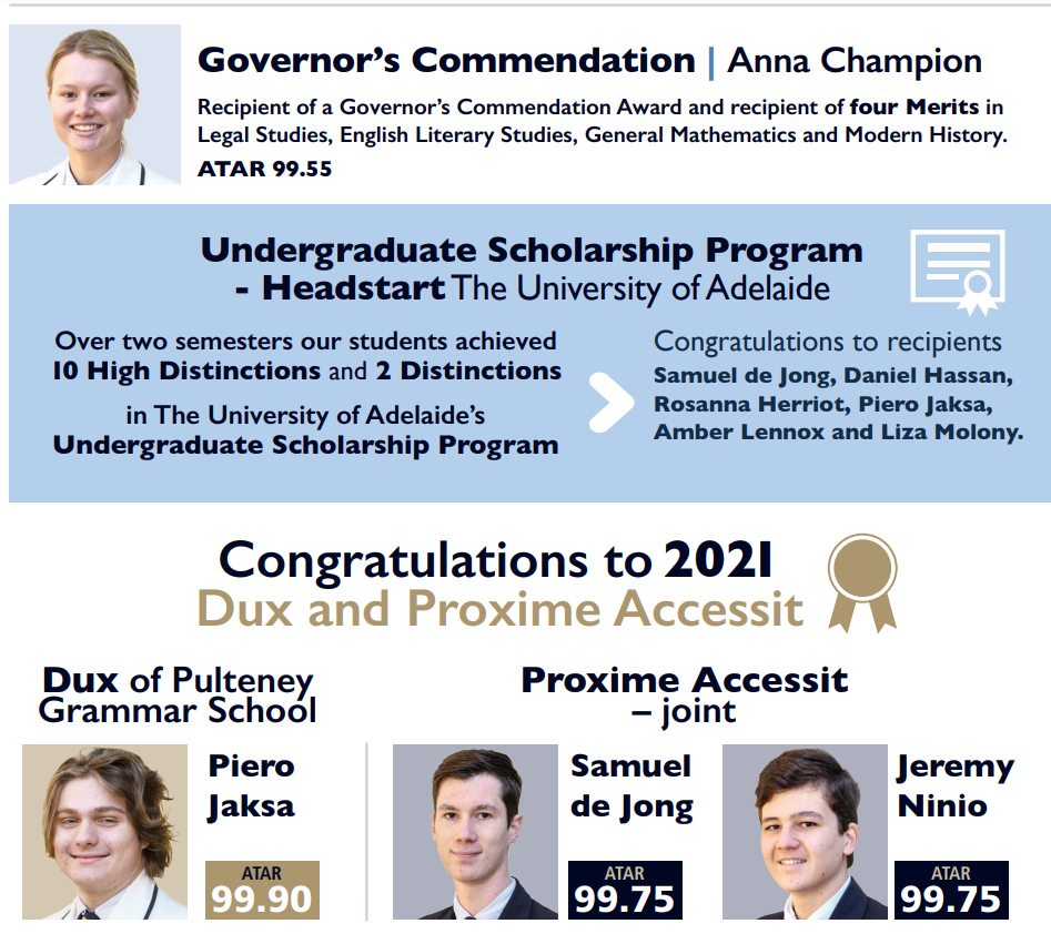 Những thành tích đáng tự hào của các em học sinh trường Pulteney Grammar School trong năm 2021: